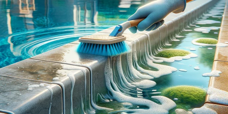 | 4. Einsatz von Bürste und Schrubber | Hartnäckigen Schmutz behandeln | Gründliche Reinigung des Poolrands |